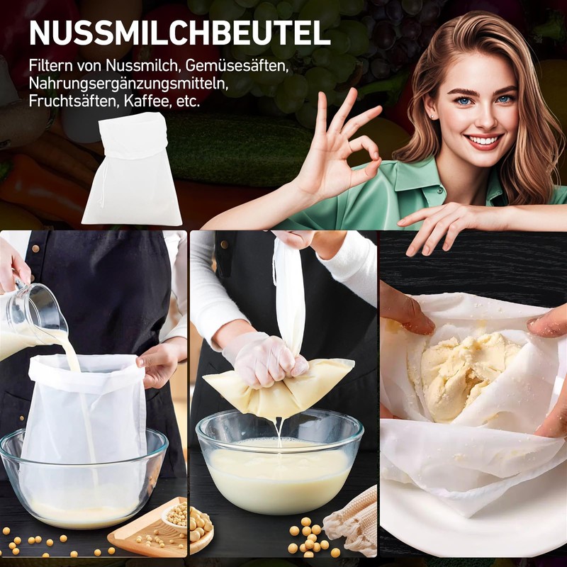 - Versatile and versatile: nut milk bag, it can not only perfectly filter common ingredients such as soy milk, juice and vegetable fillings, but is also suitable for preparing various side dishes. It can do the task excellently and meet your different requirements in different cooking scenarios, really creating a "bag" for multiple uses.