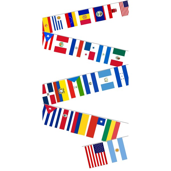 • (26) 12x18 Super Polyester Bunting Flags United States Andorra Argentina Belize Bolivia Chile Colombia Costa Rica Cuba Dominican Republic Ecuador Equatorial Guinea Gibraltar Guatemala Honduras Mexico Nicaragua Panama Paraguay Peru Puerto Rico El Salvador Spain Uruguay Venezuela United States