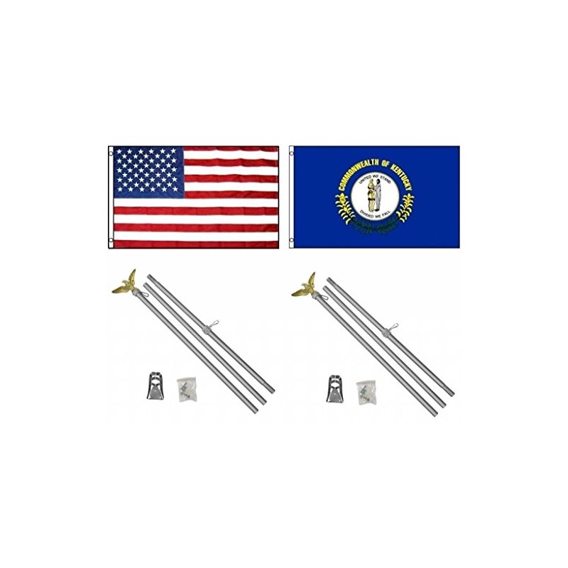 AES 3x5 3'x5' USA American w/State of Kentucky Flag w/Two 6' Aluminum Flagpole Pole Kits Eagle Topper