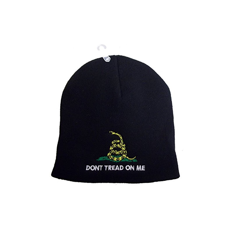 AES 8" Gadsden Don't Tread On Me Black Embroidered Beanie Skull Cap Hat 982