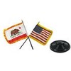 AES USA American & California Both Gold Fringe Flag 4"x6" Desk Set Table Black Base