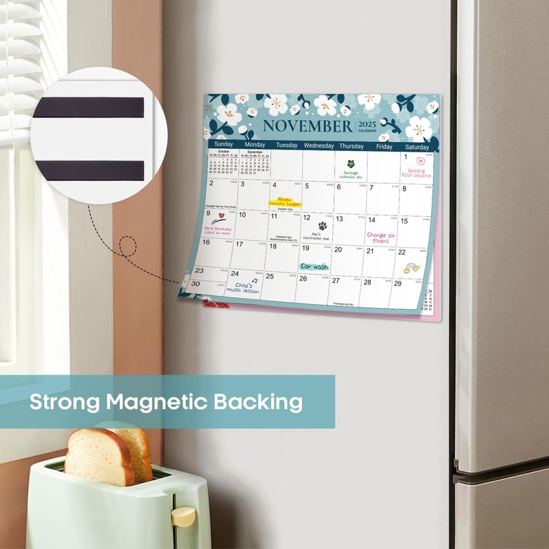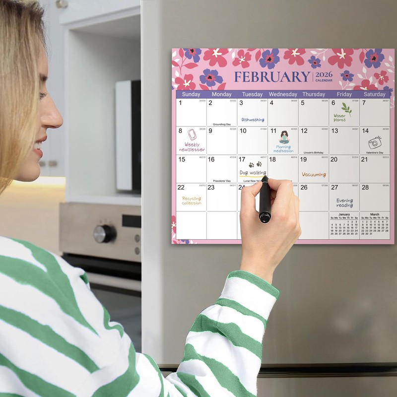 Your Key to an Organized Life Elevate your organization with our Magnetic Fridge Calendar. Keep your monthly schedule, family events, and personal goals in one convenient location. With a spacious, ink-resistant design and strong magnetic backing, our calendar ensures you stay on track without annoying ink bleed-through or constant rearranging.
