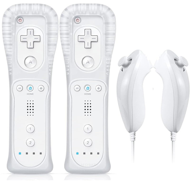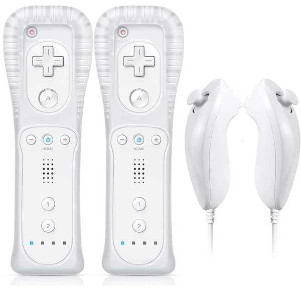 AESYBATH Remote Controller for Wii, Wireless Remote Controller with Nunchuk Silicon Case and Strap(2 Pcs White)