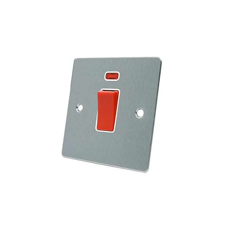 AET FSCCSWWH Satin Chrome Flat 45A White Insert-45 Amp DP Cooker Switch w/Neon Indicator 1-Gang Plate