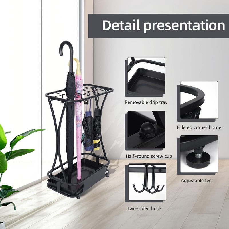 - 【Removable Drip Tray】The umbrella stand has a removable drip tray design at the bottom, which can be used to store water. The tray is removable for easy emptying.