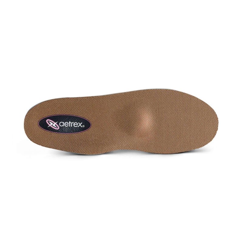 - ARCH SUPPORT: These womens insoles feature signature Aetrex medium to high arch support to help biomechanically align your body. Our plantar fasciitis insoles help to prevent common foot pain relief such as arch pain, metatarsalgia, and plantar fasciitis relief.
