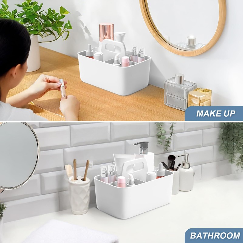 Aevcvok Stackable Organiser, Basket Organiser with Handle, Multi-Purpose Plastic Basket, Craft Basket, Desk Basket, Storage for Pens, Bathroom, Crafts, Sewing Utensils, Make-up, Office Supplies (White