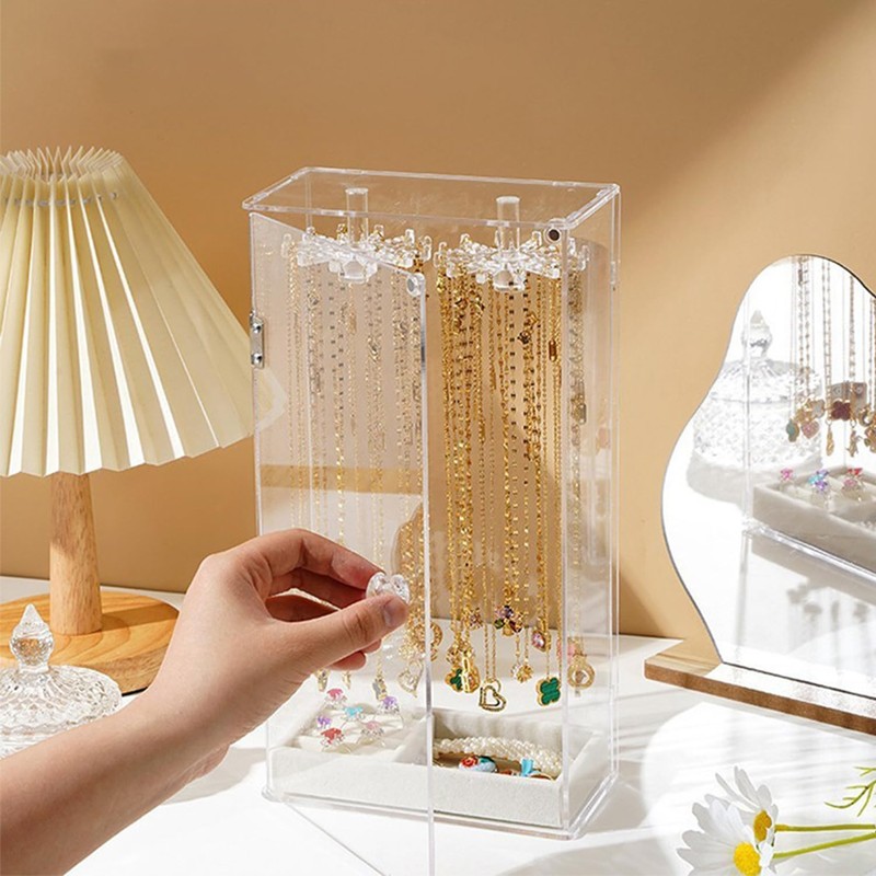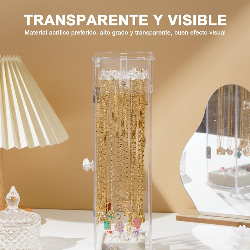 - Fácil Almacenamiento Y Recogida: El aja de almacenamiento de joyería de acrílico transparente le brinda una vista clara de sus joyas, y los 24 ganchos giratorios lo ayudan a quitar fácilmente los collares que necesita de la vitrina y deshacerse de los molestos enredos