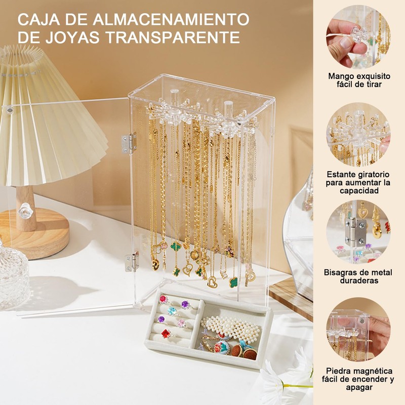 aja de Almacenamiento de Joyería de Acrílico Transparente permite una visión clara de sus joyas, el diseño de puerta de
