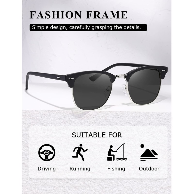 AEVOGUE Polarized Sunglasses For Women And Men Semi Rimless Frame Retro Sun Glasses AE0369 (Glossy Black&Matte Black Grey Lens)
