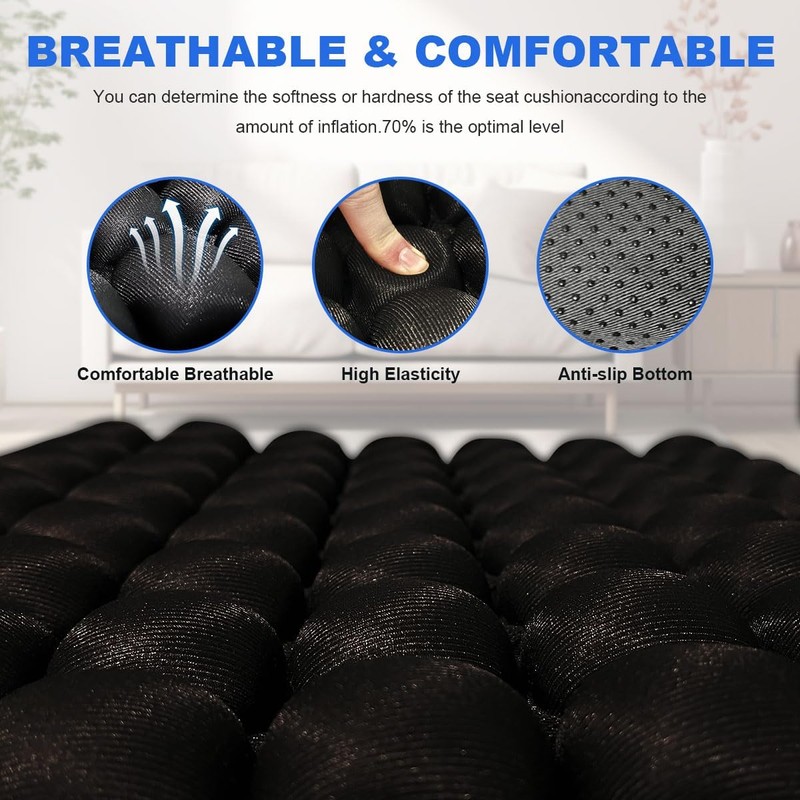 - 330lbs Heavy-Duty Support: 56 air cells evenly distribute pressure, ensuring no leakage or rupture from compression. Ideal for long sitting in wheelchairs, airplane seats, and office chairs.