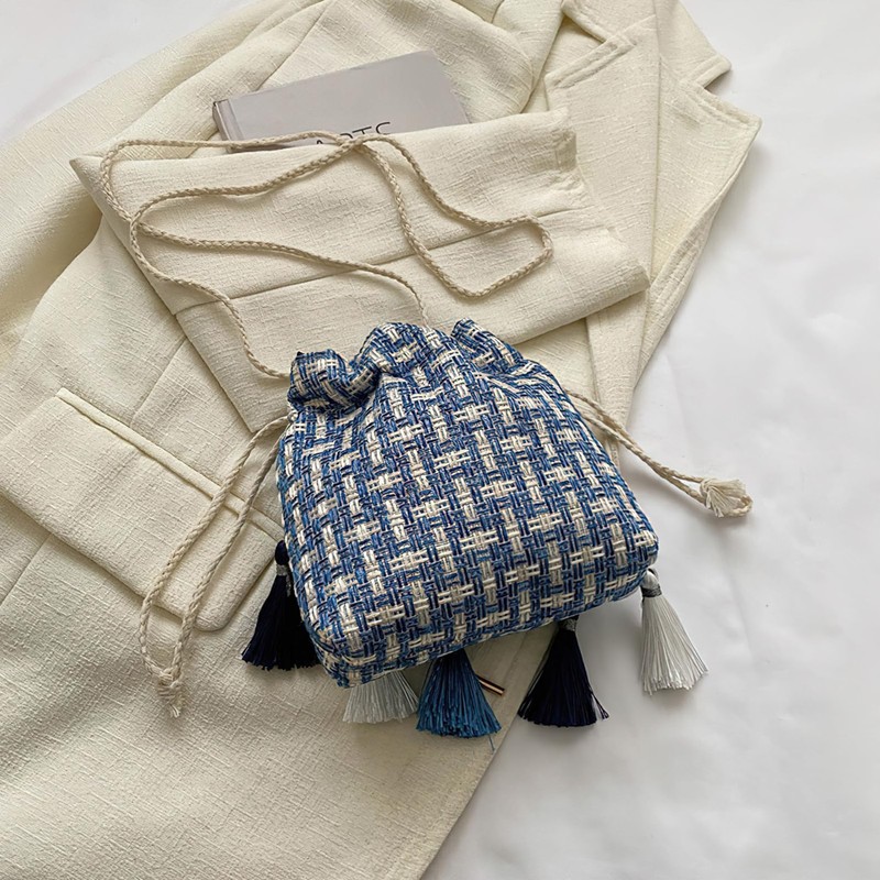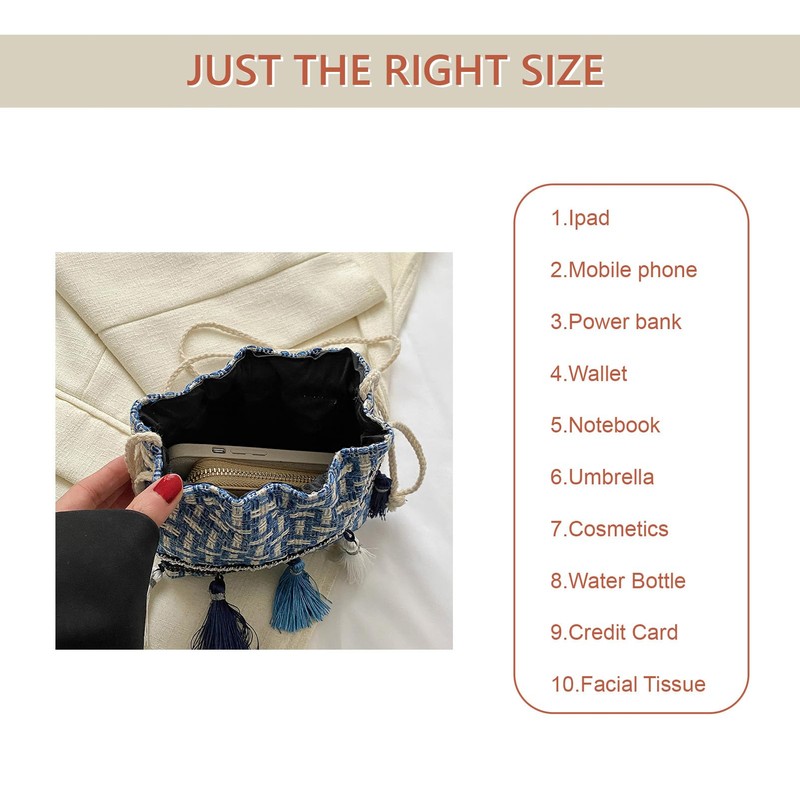- Stylish and Pratical Design: This stylish crossbody bag features a beautiful plaid woven look and bucket shape, it has a simple drawstring and can be used as a handbag, shoulder bag, crossbody bag and purse. Beautiful tassels make the bag more beautiful and fashionable.