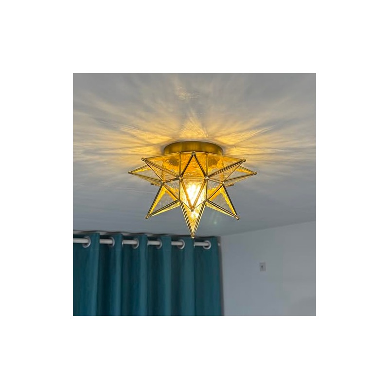 Aeyee Moravian Star Ceiling Light, Moroccan Flush Mount Ceiling Lighting with Seeded Glass Shade, Elegant Star Light for Hall Entryway Hallway