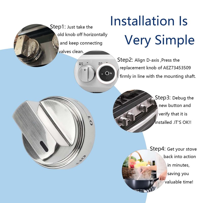 - 【High Quality】Gas stove knobs parts AEZ73453509 made of high quality and durable refractory material, it is not easy to wear out and melt under high temperature, the durable material ensures the knobs' longevity and functionality. Chrome plated finish, smooth surface, easy to wipe, easier to clean and not easy to damage. Non OEM parts, but meets OEM manufacturing requirements, far less than going back to the dealership and it is a great direct replacement.Choosing the AEZ73453509 knobs to replace your damaged oven knobs part will be your pertect choice.