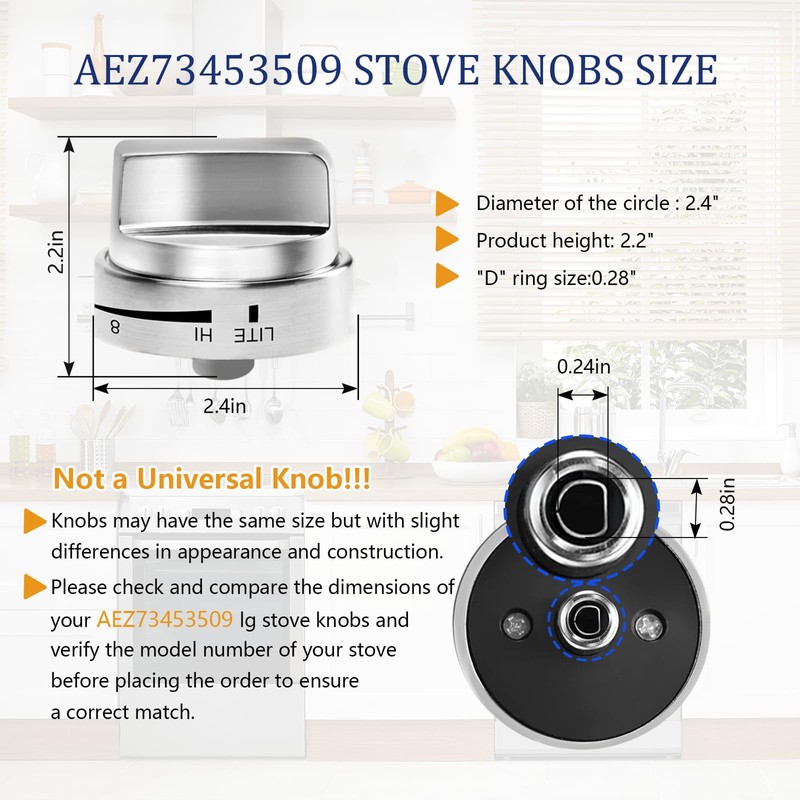 - 【Simple & Practical】AEZ73453509 fit for lg stove knobs replacements bore is "D" type iron ring design, this upgrade makes the knob better fit the size of the bottom shaft of the stove, to ensure that the knob can withstand heavy loads,won't be cracked easily, and extend the service life. No tool required - easily install the part yourself,and solve the following stove knob problems in a few minutes to restore your stove to its former glory:1,the mark on the knob is worn 2,the knob is damaged and cannot start, turn, set range 3,the knob is old and deformed.