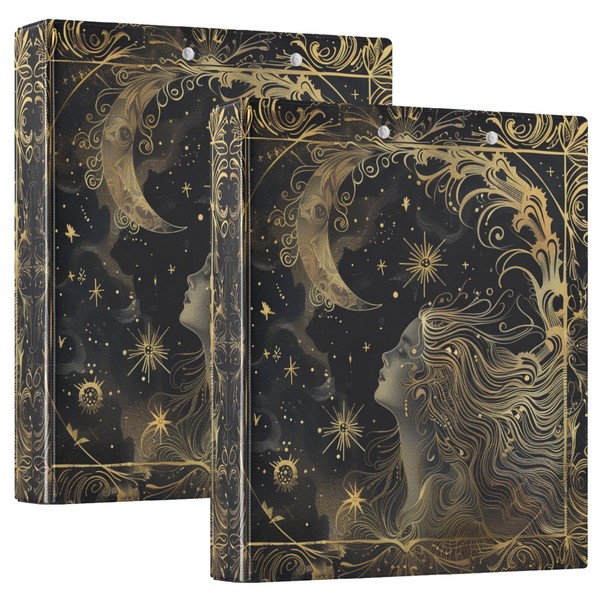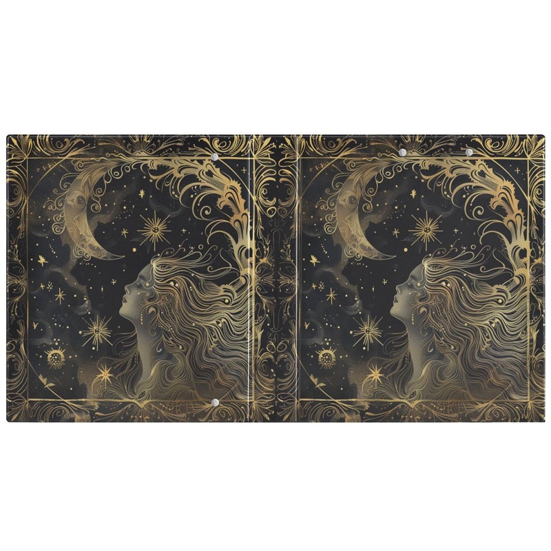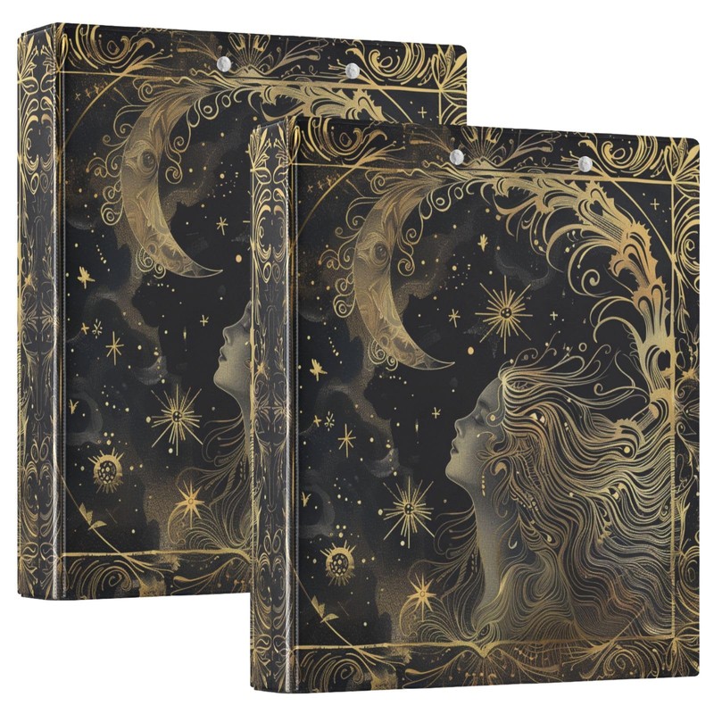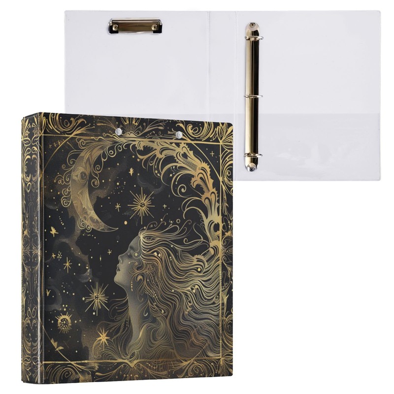 AEZODI Moon Goddess Stars 3 Ring Binders with Clipboard File Folder for Office School with Pocket, 1 Pack, E01W24021