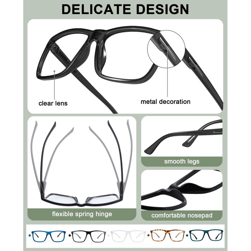 • Large reading glasses men 1.5 : Classic square design with big frame modified your face type,oversize style perfect for big and wide face,make you look stylish and professional.Tips: Small face please buy cautiously! And metal decoration in the temples give you a fresh look.Lightweight eyeglasses frame with magnifying lenses make comfy all day.