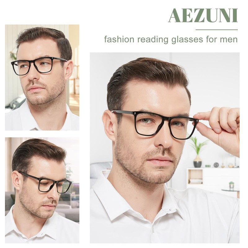 - [ Classic large readers design ]: AEZUNI square reading glasses mens constructed with metal decoration in the glasses frames, bring a timeless look,and you will always look stylish when you wear this readers.With three different colors : Black, clear,brown tortoise,choose your favorite one to match your suits.