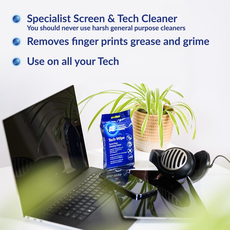 - AF Tech Wipes are your handy travel sized pack of screen cleaning wipes that are the perfect size for your bag, drawer or the home.
