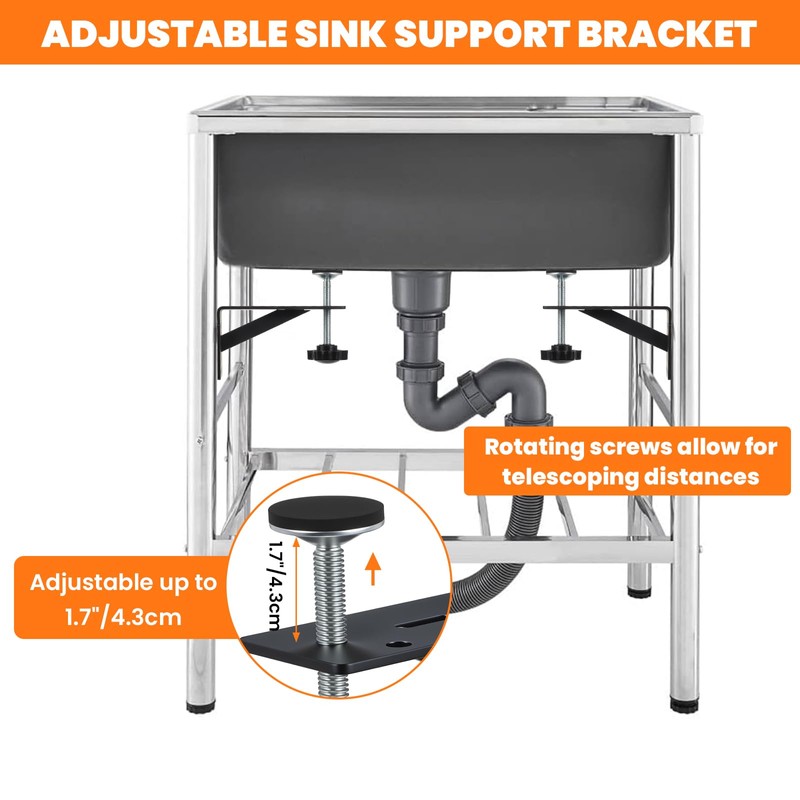 - Precision Height Adjustment: Achieve the perfect fit for your undermount sink with 1.7-inch (4.3 cm) adjustable height support, accommodating sinks of varying depths. Designed for stability, we recommend installing the sink within 2.5 inches of the cabinet edge to maximize support. Ideal for kitchen or bathroom upgrades