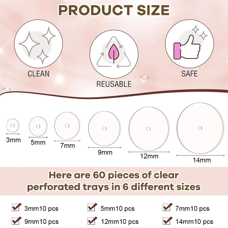 • Wide range of uses: the piercing tray is versatile for plastic belly button piercings, nose piercings, silicone tongue studs, etc. Self-adhesive ear patches not only keep growths and healing bumps in place, they also support and stabilise various earrings, reducing pressure and friction.