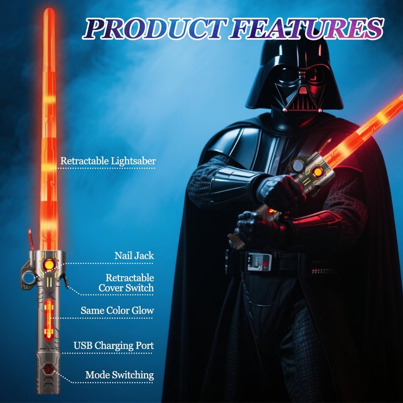 - 【Vielseitig Einsetzbar】Unser retractable wiederaufladbare lichtschwert eignet sich hervorragend für Rollenspiel-Mottopartys, Halloween-Kostümpartys und als Geburtstagsgeschenk, Weihnachtsgeschenk usw. Kinder können damit spannende Rollenspiele und simulierte Kämpfe erleben und den endlosen Spaß des Lichtschwerts genießen