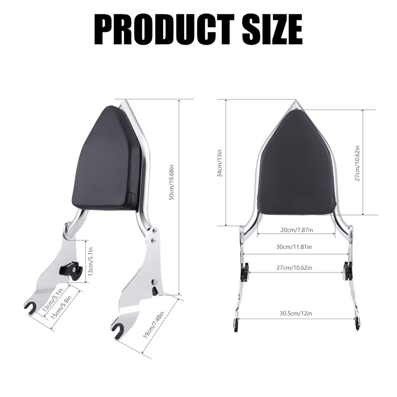 - Heavy Metal Steel Bracket - The backrest fits for harley backrest is made of heavy metal steel, which is not easy to deform and shake, and prevent backward tilting. Rear passenger backrest look great while keeping your accessories just how you like them—sleek, neat, and holding belongings steady.