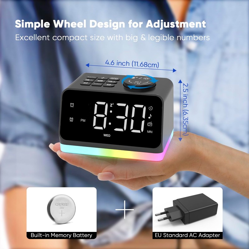 • 【Eingebaute 2 USB-Anschlüsse und Kopfhörerloch】 Die elektronische Uhr verfügt außerdem über 2 integrierte USB-Anschlüsse zum Aufladen Ihres Smartphones und einen Kopfhöreranschluss für besseres Hören des Radiotons