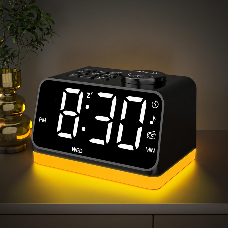 AFEXOA Digital Radiowecker mit 2 Ladestation für Handys, mit Licht, Dual-Weck...