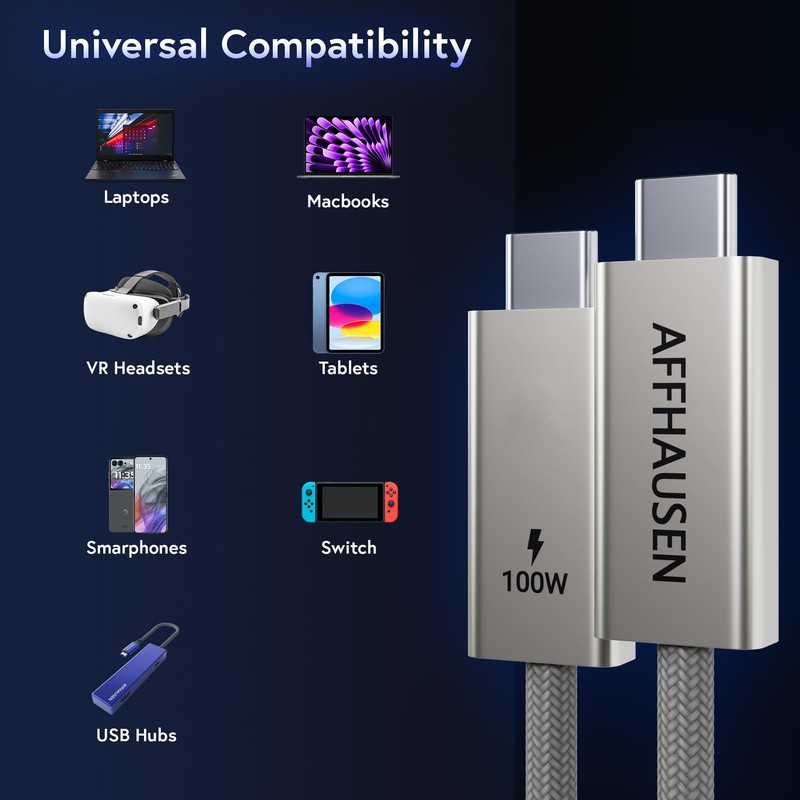 - [SMART E-CHIP TECHNOLOGY] AFFHAUSEN Active USB C charging cable features an advanced E-marker smart chip that regulates current flow, ensures stability, prevents overheating and delivers safe charging for all your high-power devices.