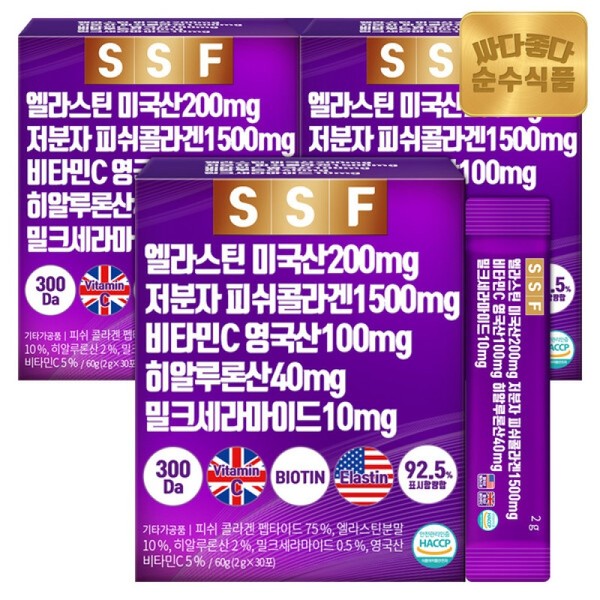 Affiliate_Pure Food Elastin Desmosine Low-Molecular Fish Collagen 3 Boxes (90 Packets) / 제휴순수식품 엘라스틴 데스모신 저분자 피쉬 콜라겐 3박스(90포)