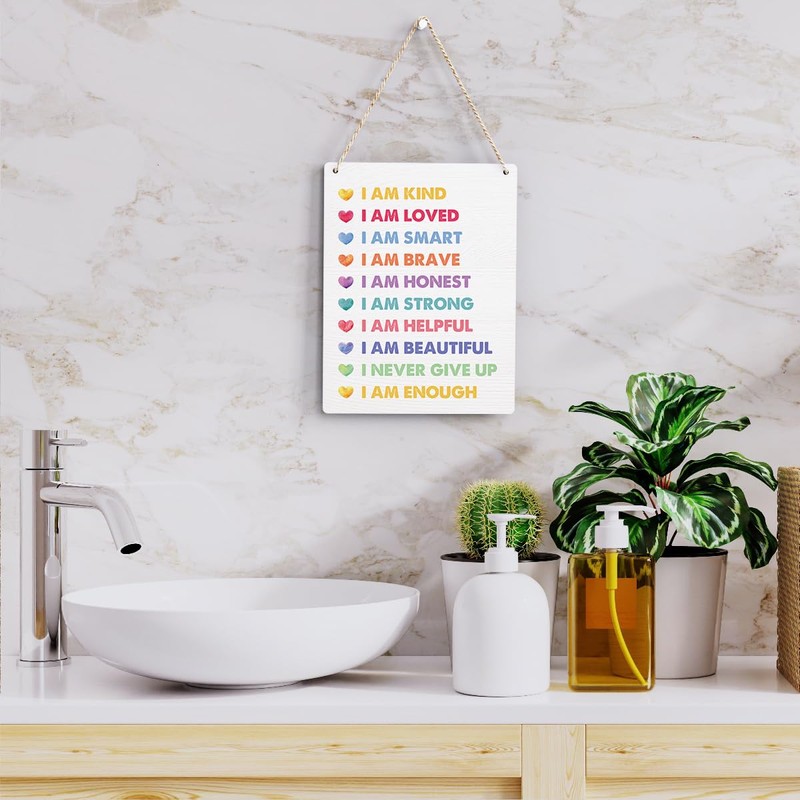 Affirmations Wall Art Inspirational Boho Kids Room Decor Wood Sign, Motivational Boho Positive Wall Art Decor Signs for Home Playroom Bedroom Kids Girls Boys Room Nursery Boho Decoration, 8x10 Inches