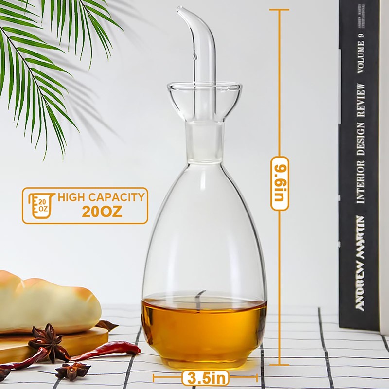 Affogato Glass Oil Bottle with Spout, Olive Oil Dispenser Vinegar Drizzler Pourer Stopper Pot, Soy Sauce Vinegar Cruet Non Drip Heat-Resistant for Cooking Kitchen Restaurant BBQ (20 oz)