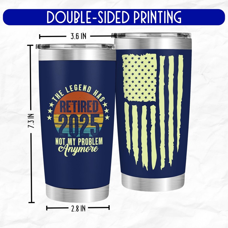 Affordali The Legend Has Retired 2025 Navy Tumbler, Funny Retirement Cups for Men – Best Retired Gifts for Him, Husband, Boss, Coworker – Cool Christmas Retirement Presents – Not My Problem Anymore