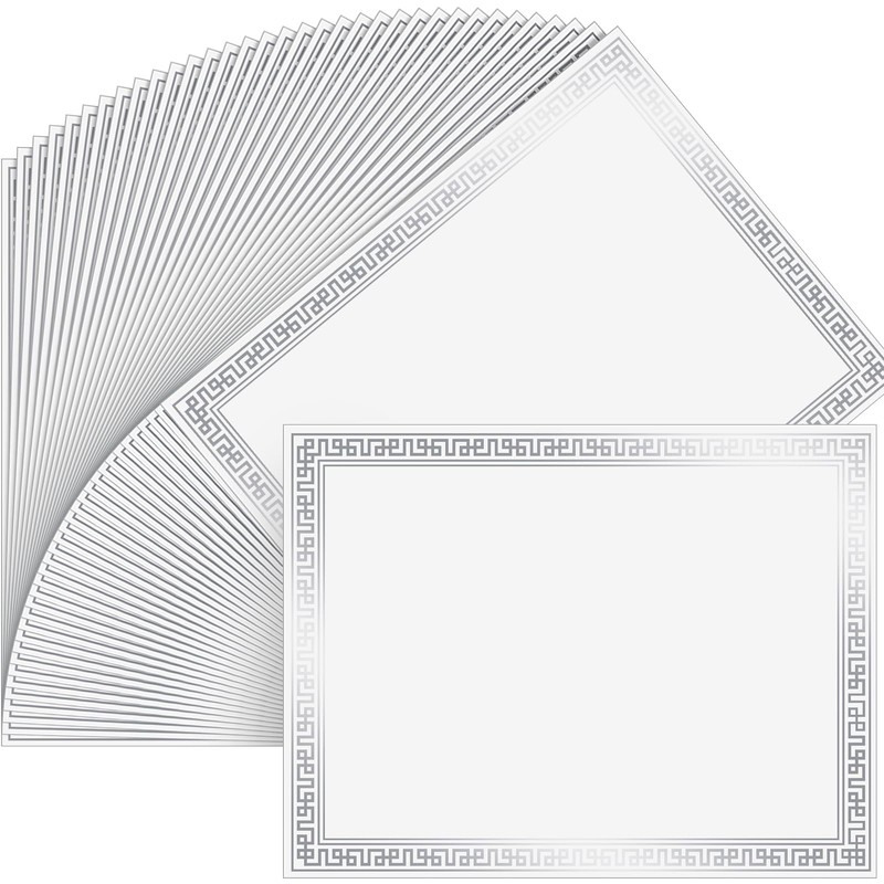 Affrolling 100 Pcs Certificate Diploma Paper 8.5 x 11 Inch Blank Cardstock for Graduation Certificate Paper for Printing Award Certificates Professional Certificate Paper(Hot Stamping Silver White)