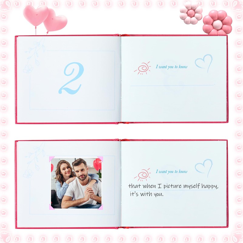 - DIY Unique Valentine's Day Gifts Book: the cover of love about you book is designed opening to place sweet couple photo; There are 50 numbered fill-in-the-blank questions and enough empty space for longer loving notes; You can paste photos with corner stickers and decorate with favorite stickers, which make this love journa more rich