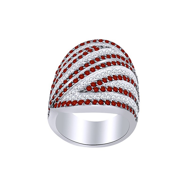 AFFY 4.20 Ct Round Cut Simulated Garnet & White Topaz Bypass Engagement Ring in 14k White Gold Over Sterling Silver Ring Size - 8