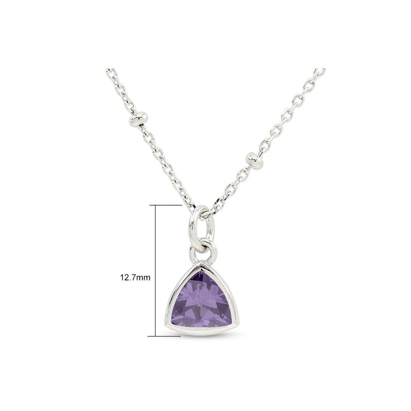 AFFY 6MM Trillion Shape Simulated Alexandrite Bezel-Set Dainty Solitaire Pendant Necklace 14k White Gold Plated 925 Sterling Silver with 16"+2" Beaded Chain