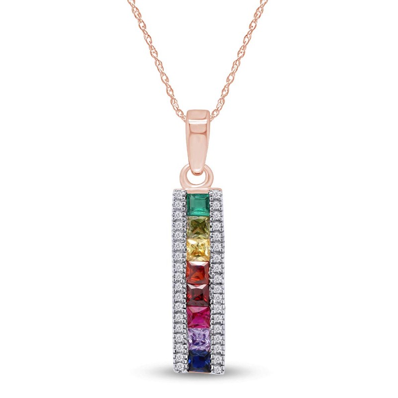 AFFY Multi Color Cubic Zirconia Bar Pendant Necklace in 14K Rose Gold Over Sterling Silver
