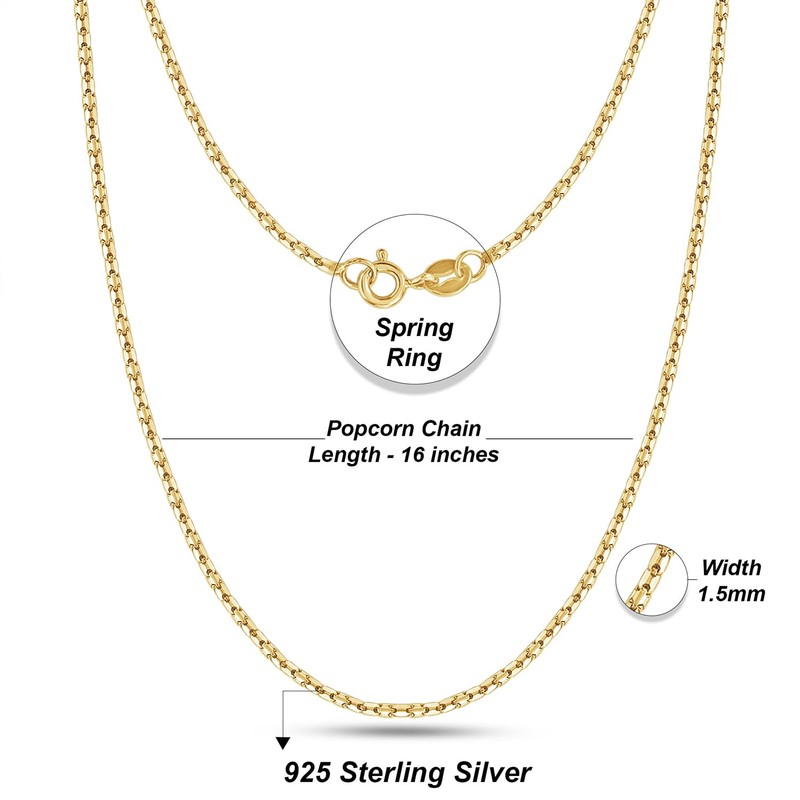 - Measure : Length -16 inches, Width - 1.5mm, Weight : 2.01 grams, Strong secure Spring Ring Clasp. Made of 925 pure sterling silver, this popcorn Chain is a great choice for individuals with very sensitive skin