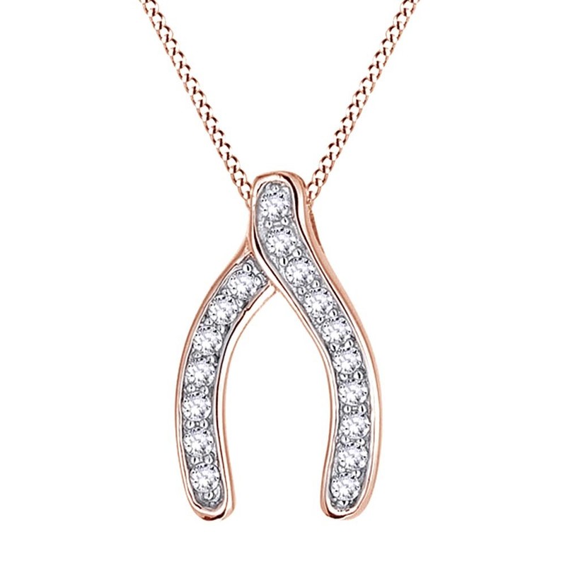AFFY Round Cut Cubic Zirconia Wishbone Pendant Necklace in 14K Rose Gold Over Sterling Silver
