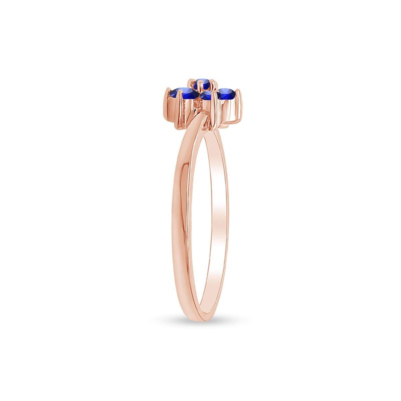 - Adds A Touch Of Nature-Inspired Beauty To Your Look Flower Band Ring In 14K Rose Gold Over Sterling Silver Makes a Standout Addition to Your Collection With 0.25 Carat (Cttw) Round Shape Simulated Blue Sapphire