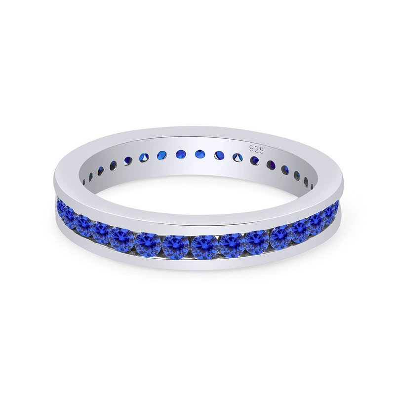 AFFY Round Shape Simulated Blue Sapphire Full Eternity Band Ring in 14K White Gold Over Sterling Silver, Ring Size: 6