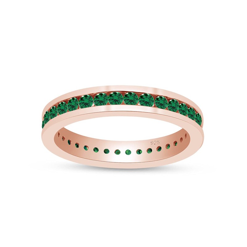 AFFY Round Shape Simulated Green Emerald Full Eternity Band Ring in 14K Rose Gold Over Sterling Silver, Ring Size: 8.5
