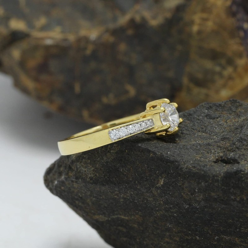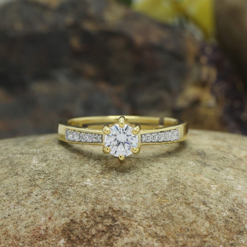 - Adds A Touch Of Nature-Inspired Beauty To Your Look Solitaire Adjustable Engagement Ring 14K Yellow Gold Over 925 Sterling Silver Makes a Standout Addition to Your Collection With Round Shape White Cubic Zirconia