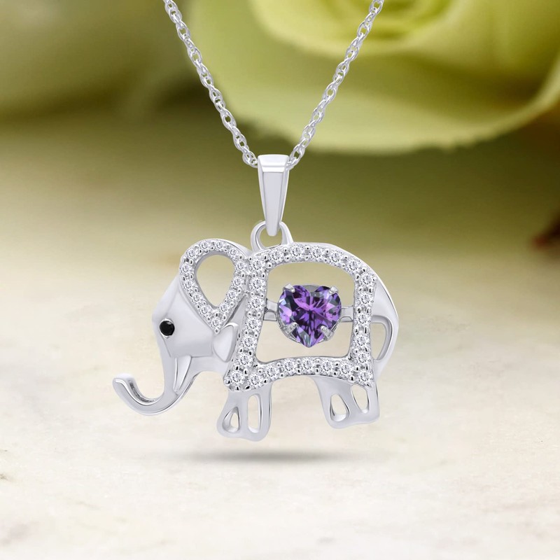 - Gemstone :- Center 5MM Heart Cut Simualted Alexandrite And Round White Cubic Zirconia, Very Good Cut, Stone Color : Purple And White, Setting Type : Prongs Setting. This Floater Elephant Pendant suspends along an 18.0-inch Rope chain that secures with a s