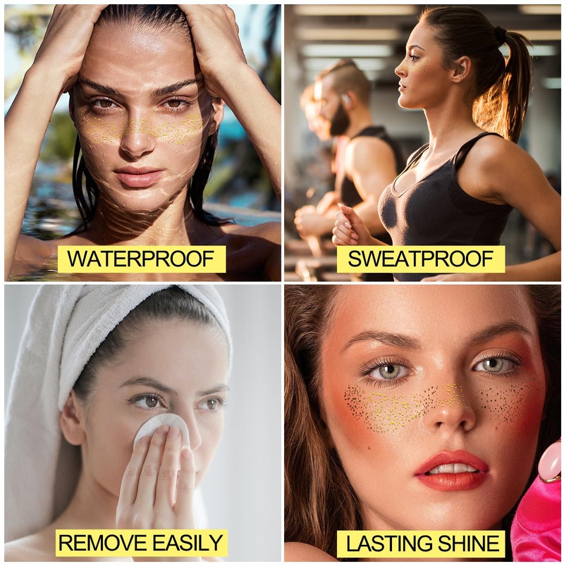 - WATERPROOF AND LONG LASTING: The sparkle makeup patches are made of gentle material and unique formula to be waterproof and sweatproof to ensure that it stays in place during any activity, freckle effect for up to 3 days, and long-lasting results that will keep you looking radiant and glowing from morning to night