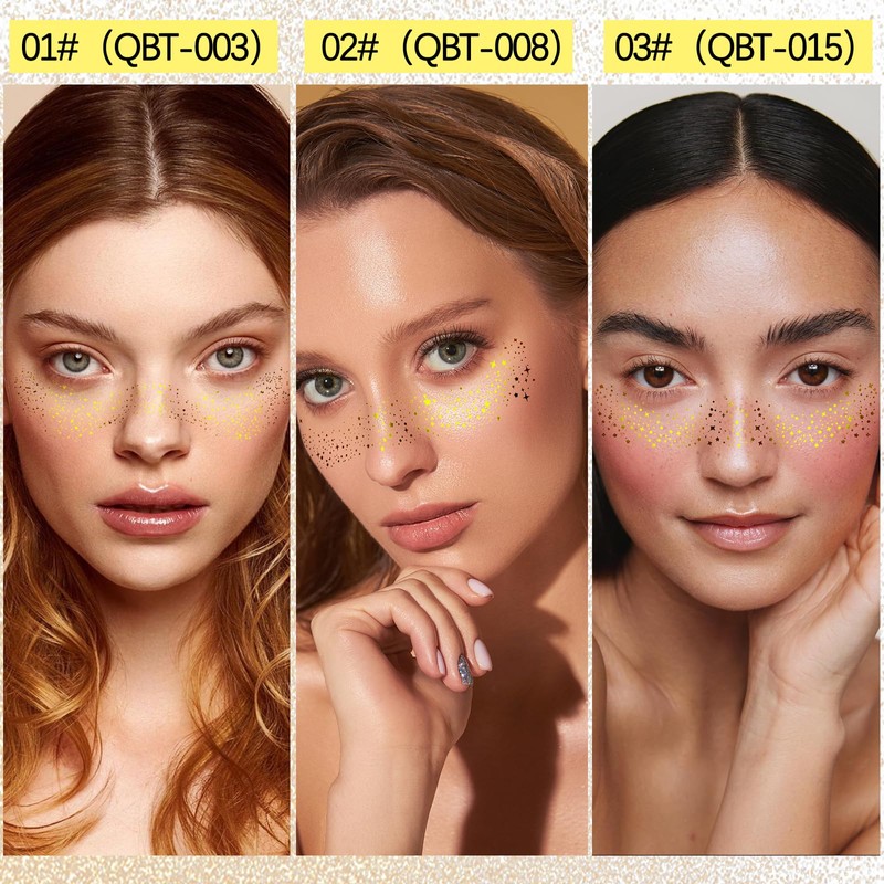 - SPARKLING FRECKLES PATCHES: The glitter freckles face focus on quality and details, with clear patterns and precise application, easy to achieve natural face freckles, add a touch of sparkle and shine to your face while fitting perfectly with your makeup, create a unique look and create unlimited possibilities, the perfect accessory to enhance your personal charm