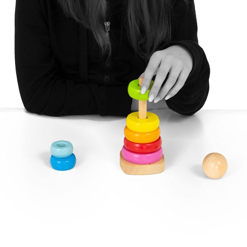 AFH Webshop Stacking Tower Multi Made of Wood, Ring Pyramid, Plug-in Toy, Sorting Game, for Children from 3 Years