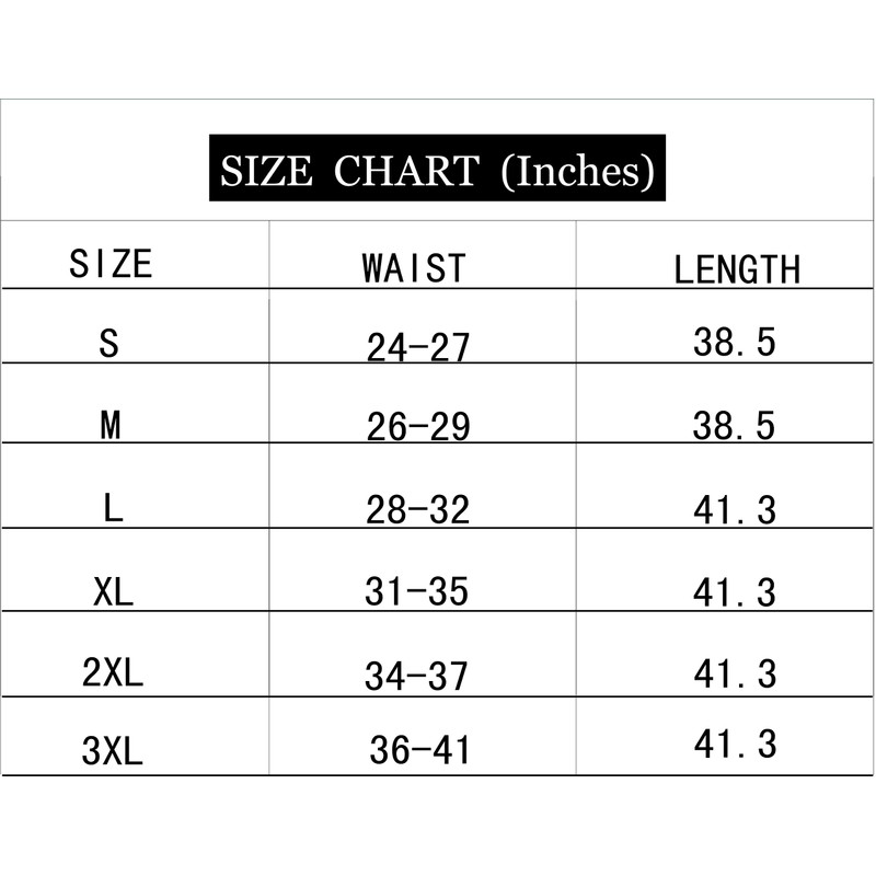 - X-Large:Waist:31 inch-35 inchSkirt Length 41.3 inch,XX-Large:Waist:34 inch-37 inchSkirt Length 41.3 inch,3X-Large:Waist:36 inch-41 inchSkirt Length 41.3 inch
